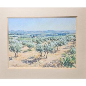 Find Out More Pastel landscape by Lionel Aggett of Provence – “Vineyards & Olive Groves , Les Alpilles, Provence”Price: £