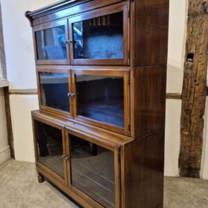 Description: Minty of Oxford, the makers of this antique three-tier glazed mahogany bookcase, have a long-established history of crafting high quality office furniture for solicitors, lawyers and companies across the globe. However, these stylish bookcases have increasing found their way into the home, because their simple uniform outlines and lack of decorative exuberance sits comfortably within today's interiors. This example particularly appealed to me, because, not only was it in good original condition, with a base-section that boasts plenty of depth to house larger books, but, it also has a very attractive surface - its once deep and rich mahogany surround has, over the last 100 years, transformed into a mellow and appealing range of soft warm tones. Now, after being carefully restored, taking great care not to disturb its patina, this bookcase is ready to be used and enjoyed once more. Measurements - 89 cm wide x 30 cm deep x 118 cm high