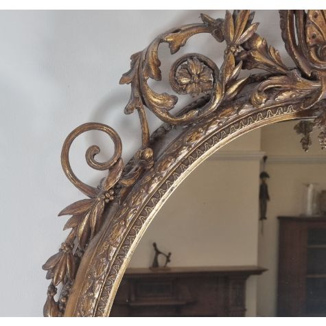 Description: This attractive antique girandole oval wall mirror dates to the last quarter of the 19th Century. Its glass plate looks contemporary with this period, and its decorative gilt frame is in excellent condition. The mirror, which is ready to be hung and enjoyed, appears to have been restored to a high standard in the last 25 years. Measurements - 120 cm high x 66 cm wide x 23 cm deep