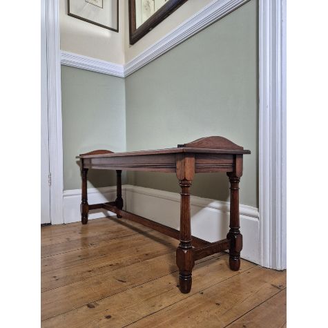 Antique hall bench in the manner of James Shoolbred & Co.
