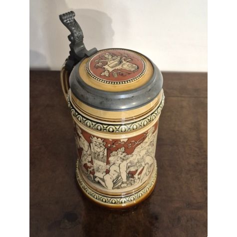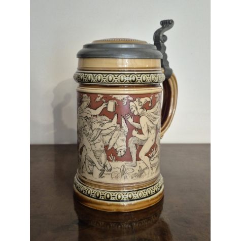 Antique Mettlach beer stein by Villeroy & Boch- Carousing Bacchus (Circa 1900)